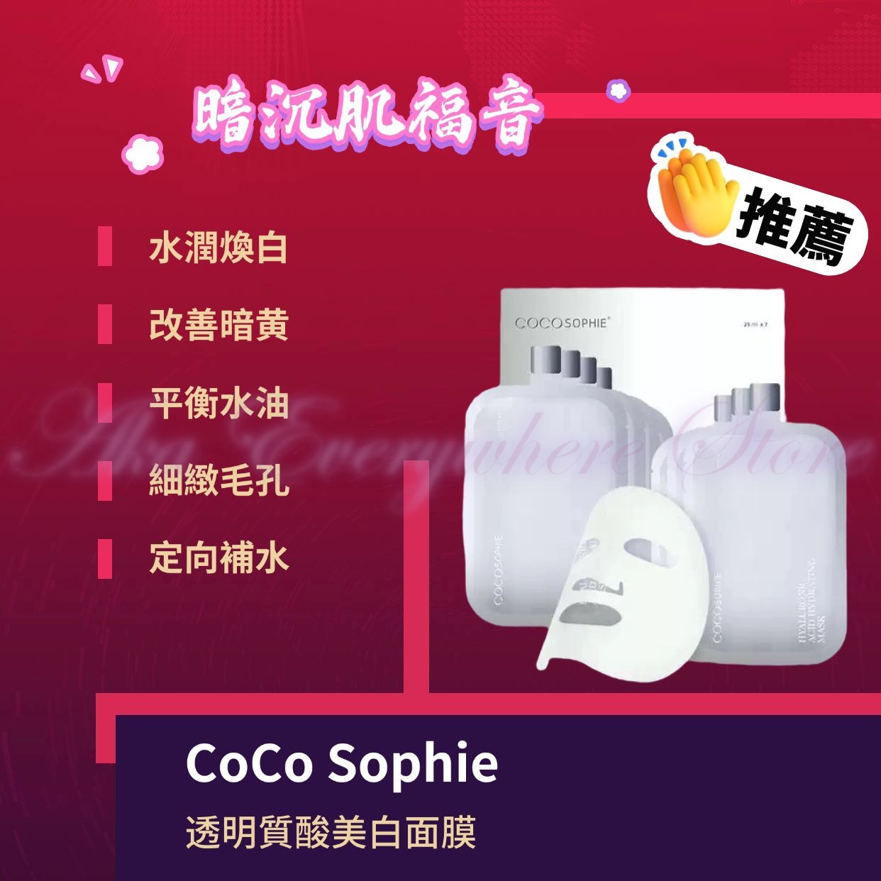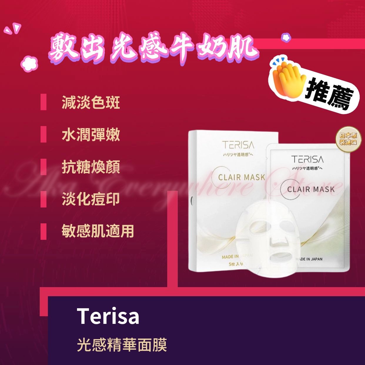 護膚產品 - 面膜系列 Sabe - 龍血賦活再生精華面膜 (1盒5片) Sabe - EGF冰肌保濕修復蠶絲面膜 (1盒5片) Sabe - 橙血透白保濕面膜 (1盒5片) TERISA - 光感精華面膜 (1盒5片) TERISA - 深層保濕光滑面膜 (1盒5片) TERISA - 緊緻賦彈面膜 (1盒5片) Vital Element - 蠟菊收毛孔清涼面膜 (10片) Vital Element - 蘋果幹細胞面膜 (10片) Vital Element - 維他命注水面膜 (10片) Vital Element - 舒緩退紅面膜 (10片) Vital Element - 多功能修護蠶絲面膜 (10片) COCOSOPHIE - 透明質酸護膚面膜 (一盒7片) COCOSOPHIE - 透明質酸美白面膜 (一盒7片) COCOSOPHIE - 透明質酸保濕面膜 (一盒7片) CESARINA - 竹炭酵素氧氣吸塵面膜 (1盒10片) AH1 Medi - 人參蝦青素緊緻抗皺面膜(1盒10片)