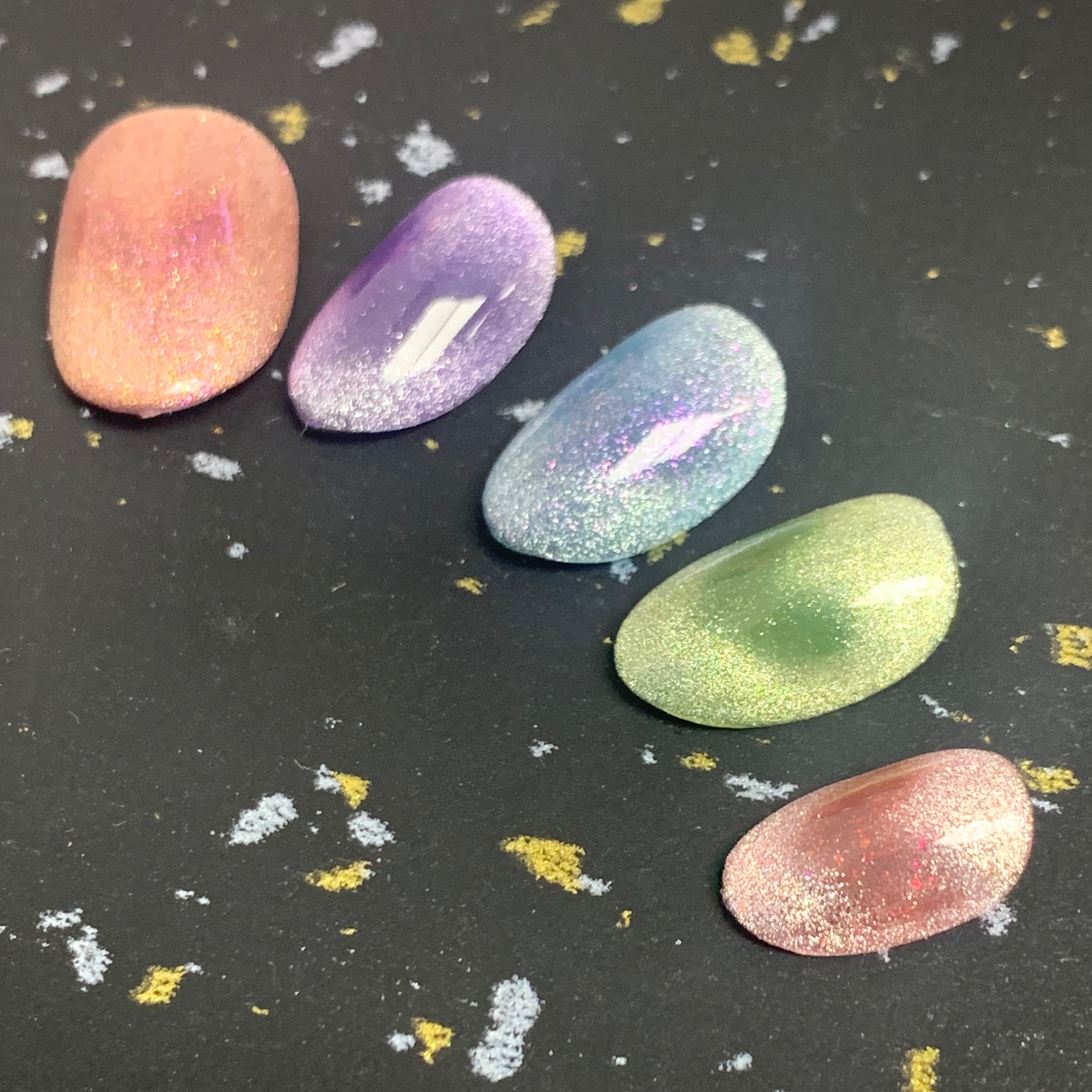 把彩虹色的星塵裹進清透甲面,粉紫青綠像打翻了調色盤的溫柔,每一寸碎閃都在發光,抬手就是自帶氛圍感的夢幻暴擊 - 全人手設計穿戴甲💅 (手繪款) ✨甲型:橢圓 ✨尺寸: S - 歡迎來圖訂製💕 (🌸圖片會有少量色差🌸)