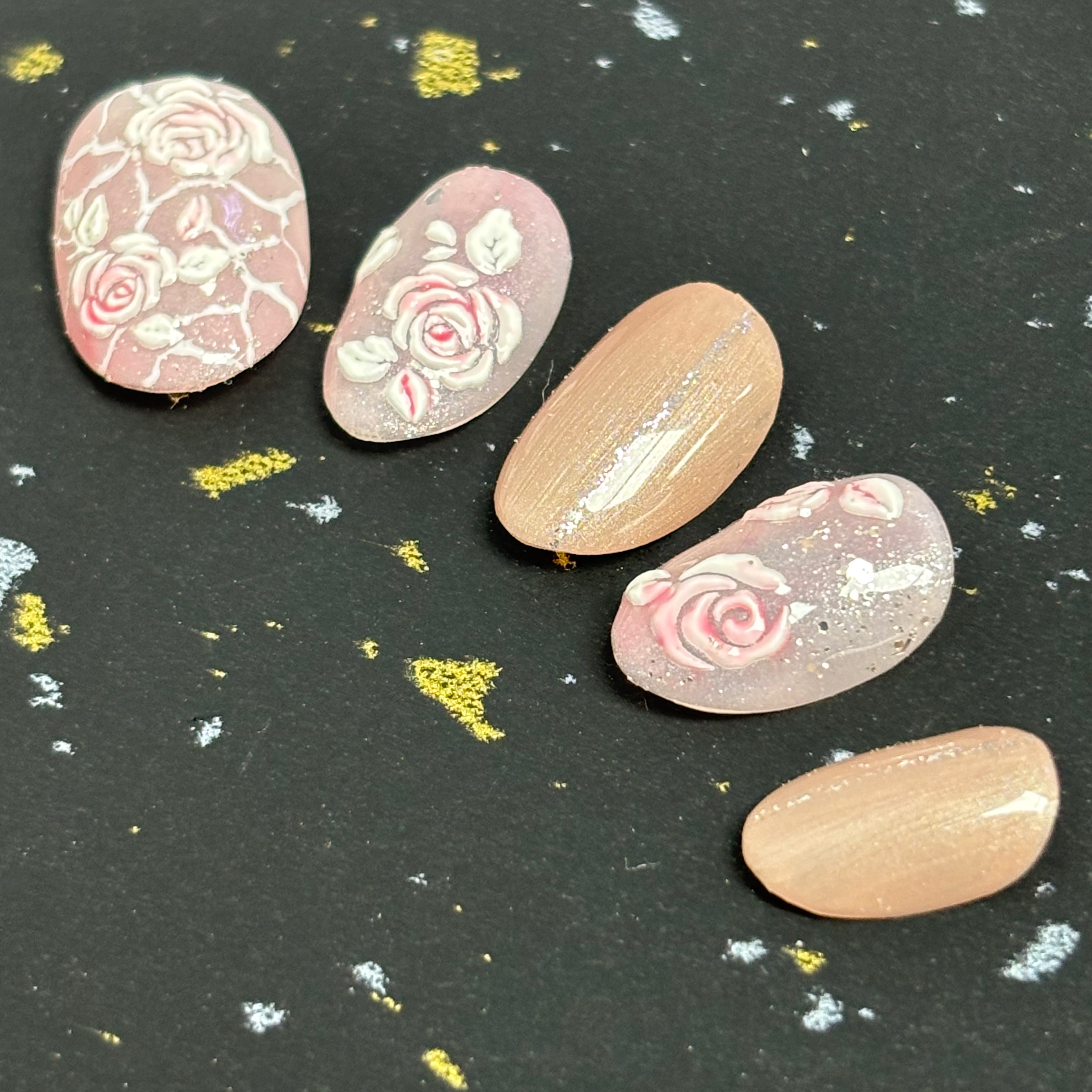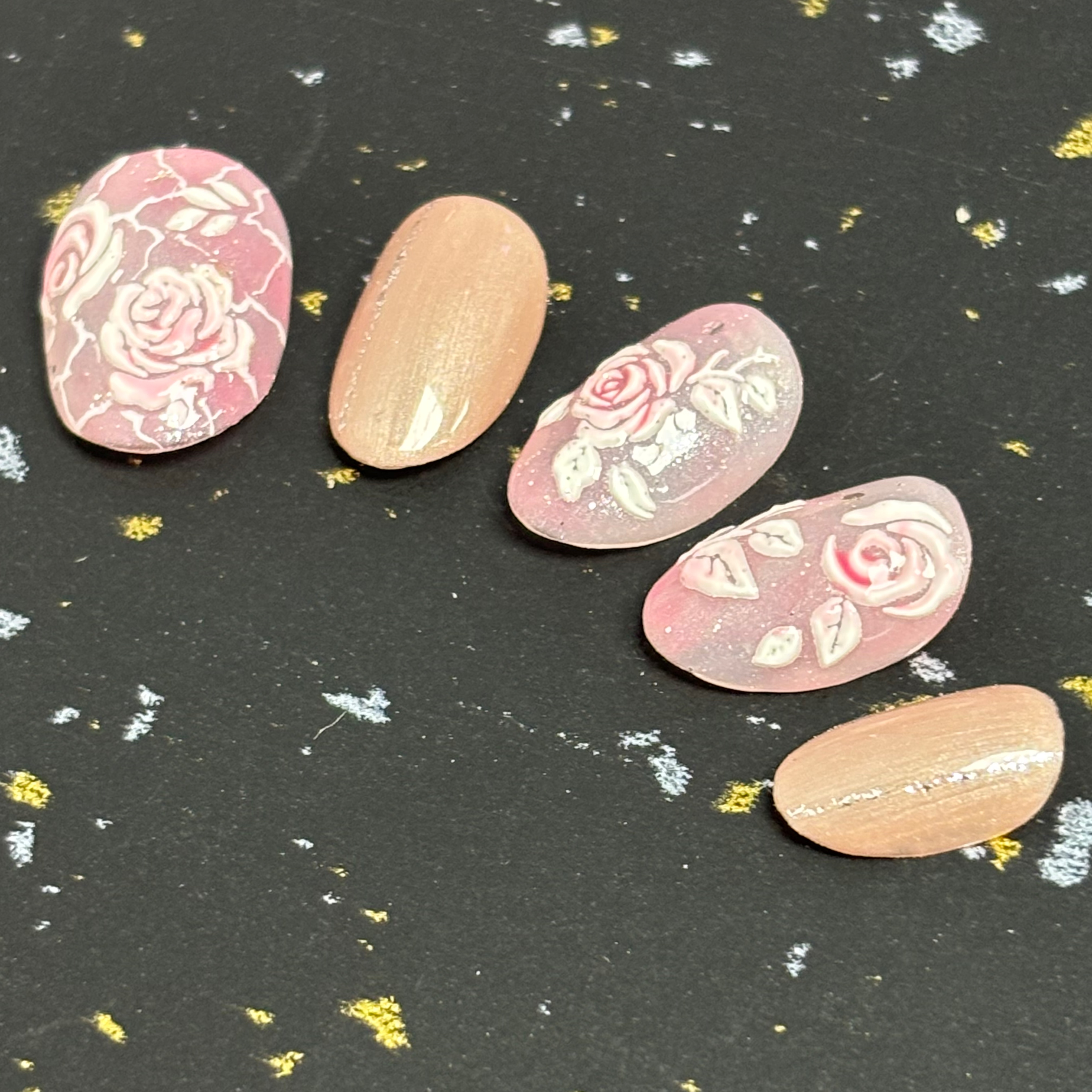 把玫瑰浮雕裹進柔霧粉紗里,裸調底色像輕軟的奶油,細碎閃片是藏在溫柔里的精緻,指尖一抬,是自帶法式優雅的浪漫氛圍。 - 全人手設計穿戴甲💅 (手繪款+拼貼款) ✨甲型:橢圓 ✨尺寸: S - 歡迎來圖訂製💕 (🌸圖片會有少量色差🌸)