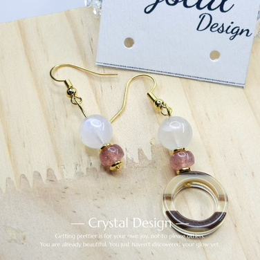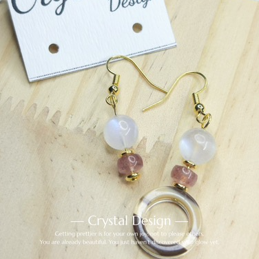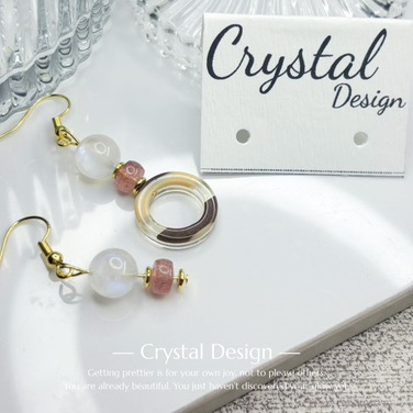 月亮石草莓晶耳環