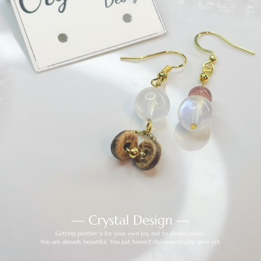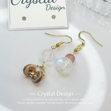 月亮石草莓晶耳環