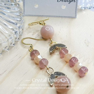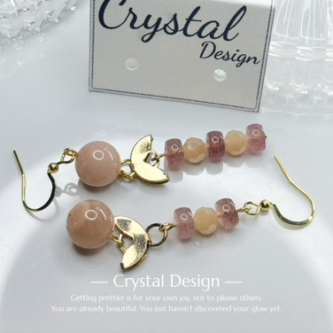 橙月光草莓晶耳環
