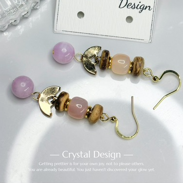 水蜜桃瑪瑙胭脂瑪瑙紫鋰輝耳環
