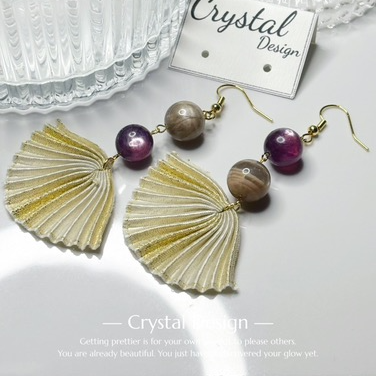 紫鋰雲母彩月光耳環
