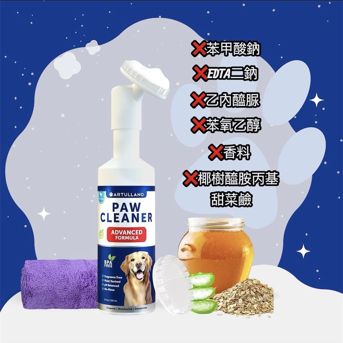 🌟專為清潔、滋潤和除臭狗狗腳掌而設計 ✅採用先進配方 ✅不含BPA 和香料 ✅使用植物來源成分,且pH 值平衡 使用方式:沖洗泡沫清潔劑,附有矽膠刷,方便清潔容量:150ml