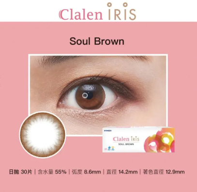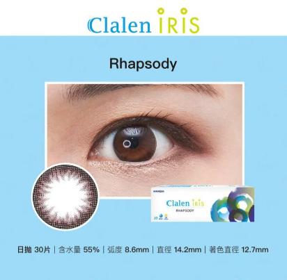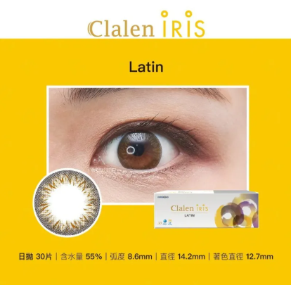品牌:Clalen 製造商 : 韓國 更換需知 : 每日即棄 功能 : 彩妝 鏡片直徑 : 14.2 mm 含水量 :55% 包裝 : 30片 / 盒 鏡片可提供弧度:8.6 mm 度數可提供範圍 : 0度, 近視100度至近視600度(每25度一級) 近視650度 至近視900度 (每50度一級) Jazz Black 貓眼黑 Soul Brown 深栗棕 Rhapsody 玫瑰銅 Latin 琥珀啡 Clalen Iris由韓國人氣國民女神秀智代言 韓國超人氣隱形眼鏡 Clalen Iris Clalen Iris全球獨創Ultra-Soo™ 高效保濕技術採用火透明質酸鈉(HA)具有獨特的親水力和保濕作用 ,有效保持鏡片內的水份 Clalen Iris效阻擋 99.3% UVB及 75.9% UVA Clalen Iris長期配戴,雙眼仍能保持濕潤舒適 🌟落單後約5個工作天寄出