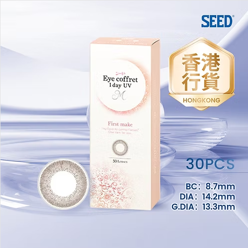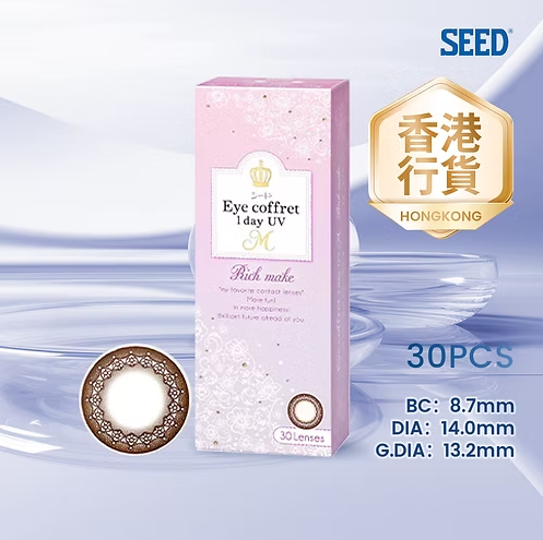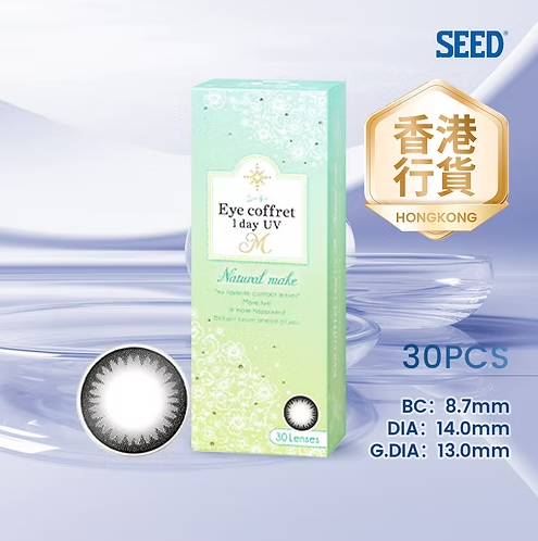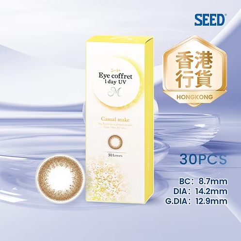 品牌:SEED 製造商 : SEED 更換需知 : 每日即棄 功能 : 彩妝 鏡片直徑 : 14.0mm - 14.2mm 含水量 :98% 包裝 : 30片 / 盒 鏡片可提供弧度:8.7 mm 度數可提供範圍 : 平光、近視100度至近視600度(每25度一級) 近視650度 至近視900度 (每50度一級) 鏡片顏色:Casual Make (金棕)、First Make (混合棕)、Sheer Make (棕灰)、Sweetie Make (栗棕)、Base Make (淺啡)、Rich Make (啡)、Natural Make (黑)、Grace Make (灰) 🌟落單後約5個工作天寄出